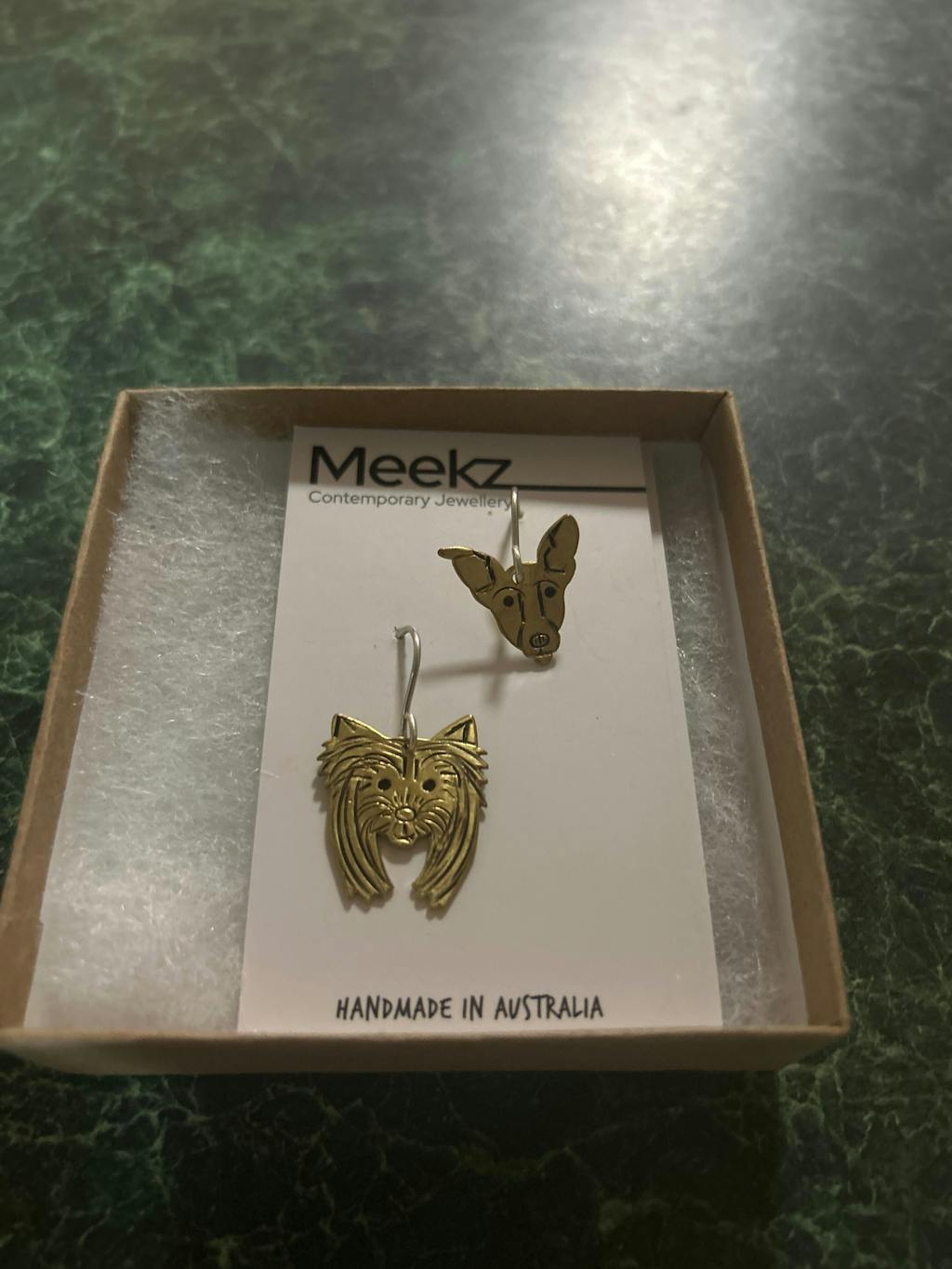 I came across the Meekz Contemporary Jewellery store at the 2024 Dog Lovers Festival in Brisbane. These Labrador earrings caught my eye, as I have a Labrador myself. I asked Meekz if she'd be willing to make a single earring into a dog tag, with my contact details stamped on the back, and she was eager to help! I received this dog tag yesterday and it looks fantastic!
